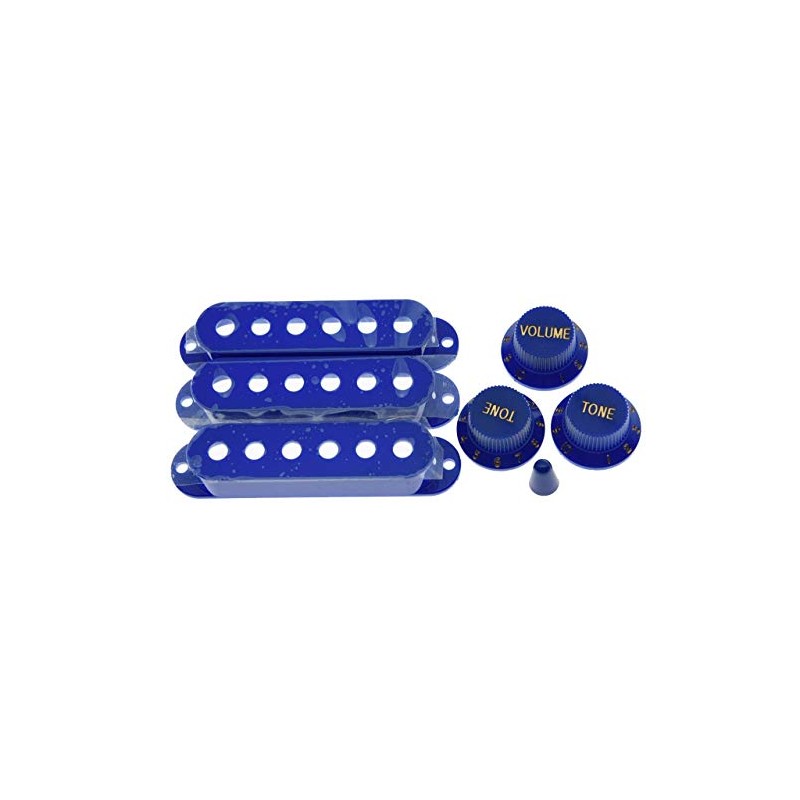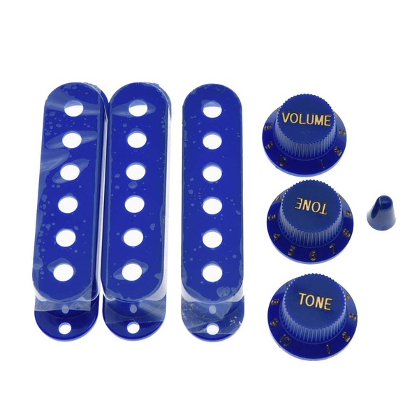 KAISH Blue ST Strat Pickup Covers Knobs and 5 Way Switch Tip Cap