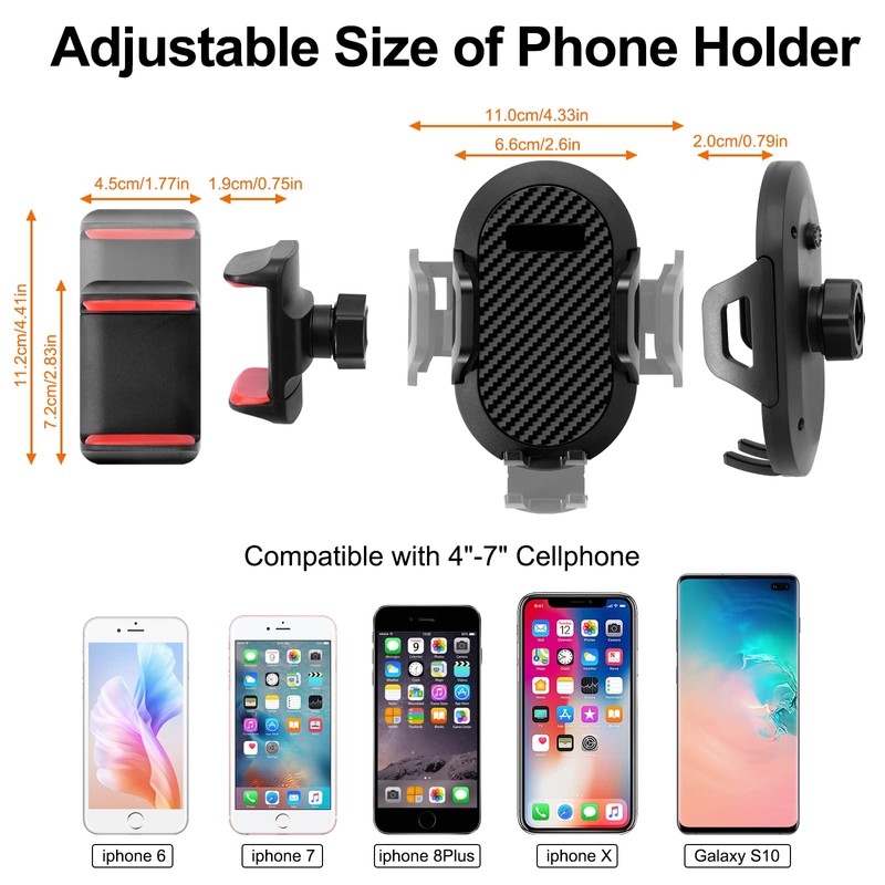 - 【Multi-Purpose Vehicle Phone Holder】 High side base anti-skid texture design, non slip wear, the items will not easy to slip. It holds onto your phone devices, firmly while off road driving. No damage to your phone. Also compatible with some action camera, POV cameras and other devices, fit well for all mobile phones between 4''-7''in width and thick case