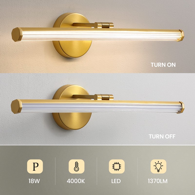 - Wide Application - This brushed gold vanity light can be mounted horizontally over mirror, or vertically on a wall. Modern and simple style, KAISITE vanity lights are suitable for bathroom, mirror cabinets, powder room, living room, and bedroom, it can be a perfect decoration at your home.
