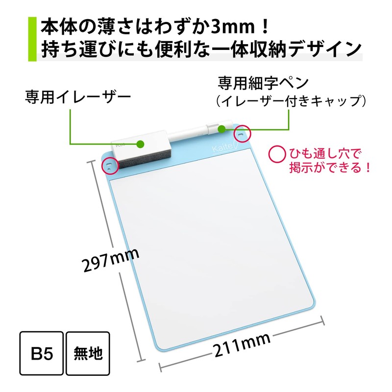 - [Standards] B5 plain [External dimensions] H 10.2 x W 7.2 x D 0.1 inches (257 x 183 x 3 mm); Set contents: Main unit, new dedicated pen (pen cap), Dedicated eraser (1 each)