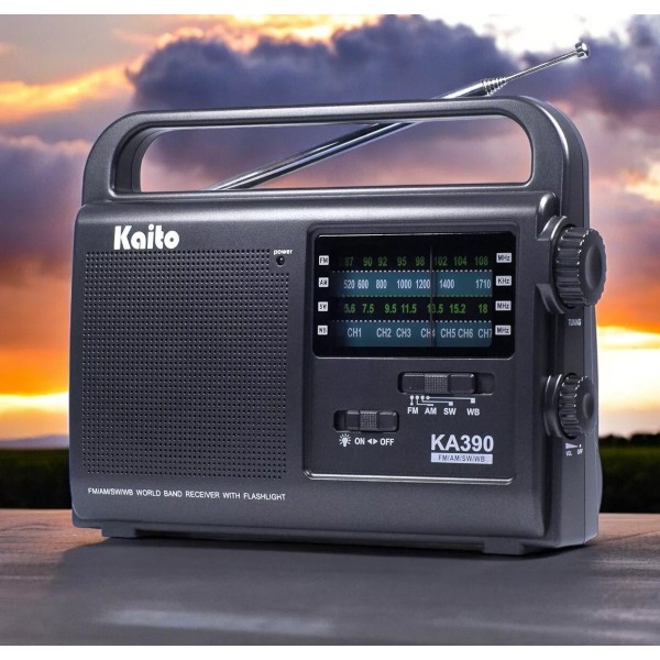 Featuring modern advanced semiconductor circuity with low-power consumption, the KA390 has a whopping continuous playing time of up to 300 hours with 3 fresh batteries. And with its comprehensive coverage of AM, FM, shortwave and NOAA weather (USA and Canada only), the KA390 picks up radio signals from near and far for entertainment, sports, talk-shows, and worldwide breaking news, and delivers real-time weather forecast around the clock in the USA and Canada.