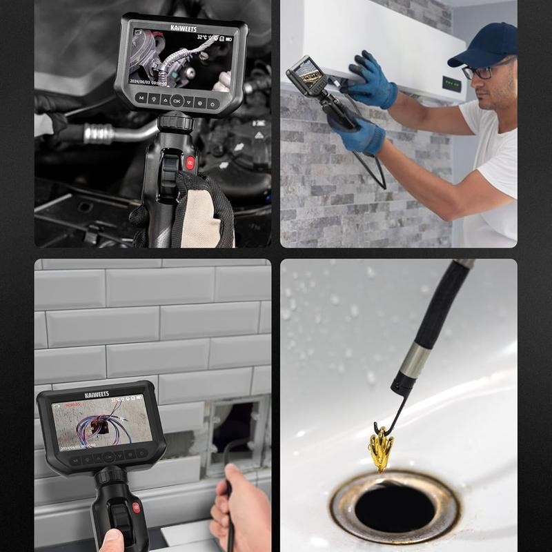 KAIWEETS Industrial Endoscope Borescope Camera with 5FT Semi-Rigid Cable Detecting Tools, Waterproof Borescope Inspection Camera for Sewer & Automobile Air Conditioner & Wall Inspection Use
