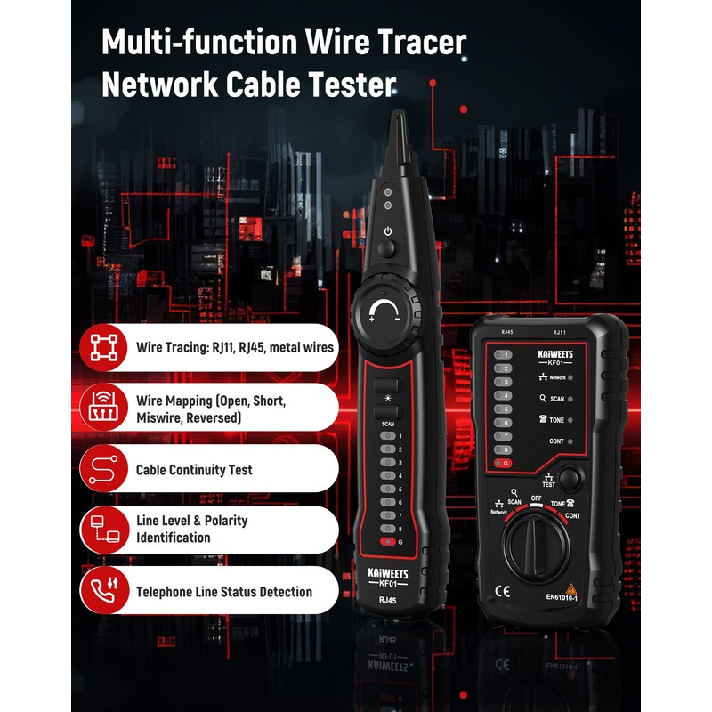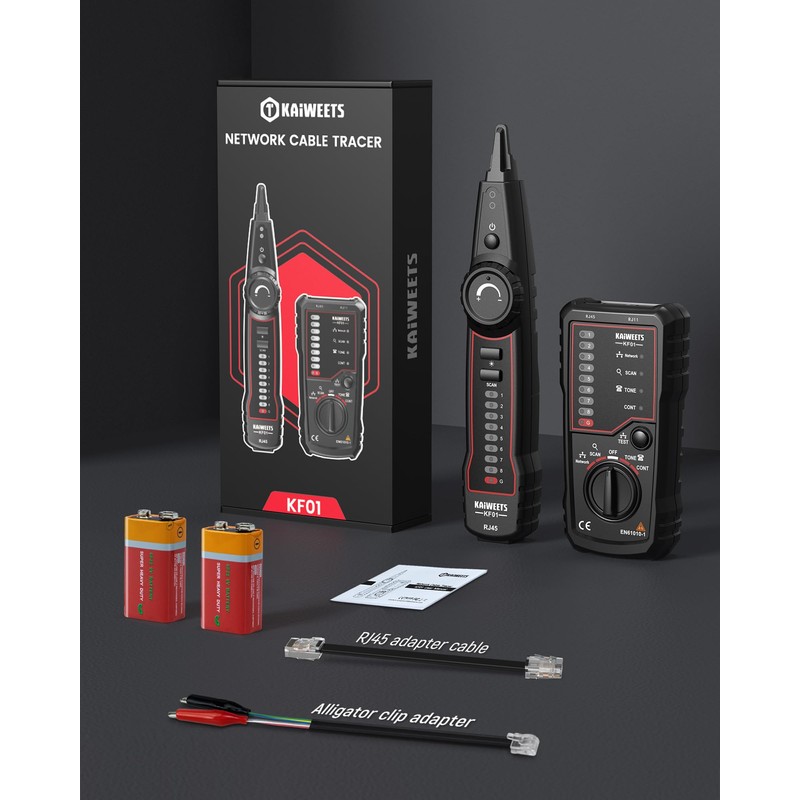 KAIWEETS Network Cable Tester, RJ45 RJ11 Wire Tracer Line Finder, Tone Generator and Probe Kit, Cable Tracer Ethernet LAN Network Cat5 Cat6 for Cable Collation, Telephone Line Test