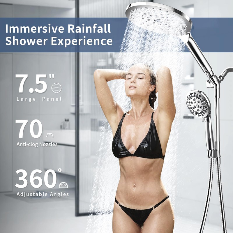7.5-Inch Rainfall Shower Head with Handheld Combo for a wide and unique showering experience