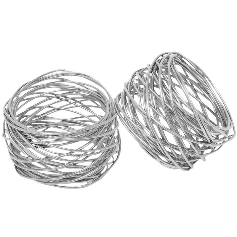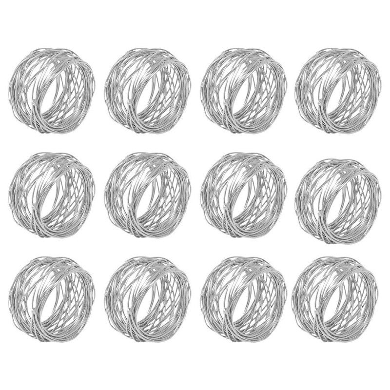 Kaizen Casa Handmade Silver Round Mesh Napkin Rings Holder for Dinning Table Parties Everyday, Set of 12 (Silver, 12)