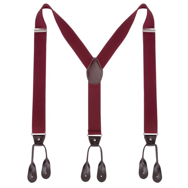 - HEAVY DUTY – Braces function button end fasteners, you can connect to your trousers to prevent them falling with the 6 sewing on buttons that are included when you buy a brace, matching back leather crosspatch