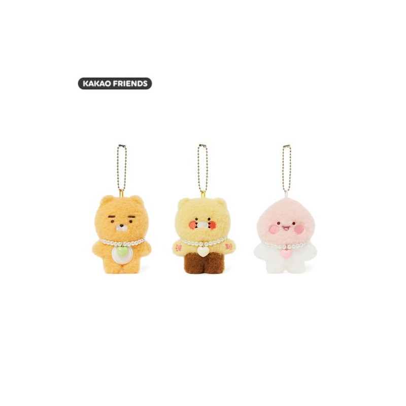 KAKAO FRIENDS Flat Fluffy Pearl Necklace Keyring Doll 1ea