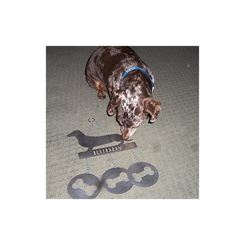 - This wind chime is great for all Dachshund lovers.Maybe you like this naughty dog tooDachshund measures 5.75"h x 8"w / bone 3"h x 2.5"w (Measurements do not include chain length)