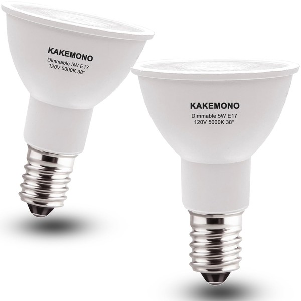 KAKEMONO E17 LED Spotlight Bulb Dimmable 40W Halogen Replacement E17 Intermediate Base Type 5W R14 Reflector Light Bulb for Desk Reading Cabinet Lamp, Daylight White 5000K, 2 Pack