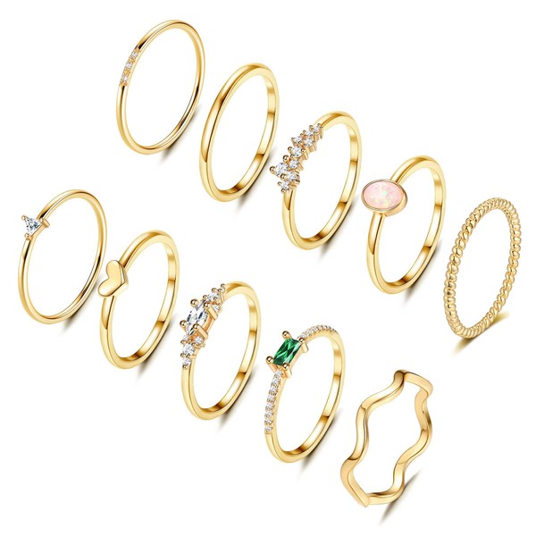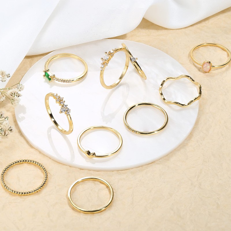 - γπππππ€πππ₯π π«π’π§π π¬ ππ¨π« π°π¨π¦ππ§γ- One order includes 10pcs non tarnish gold rings, like CZ rings, Heart rings,opal ring,etc. Available in sizes 5-11, Extreme simple yet eternal, Stylish yet classic. High polished smooth surface without sharp edge. Meet your different dressing needs.