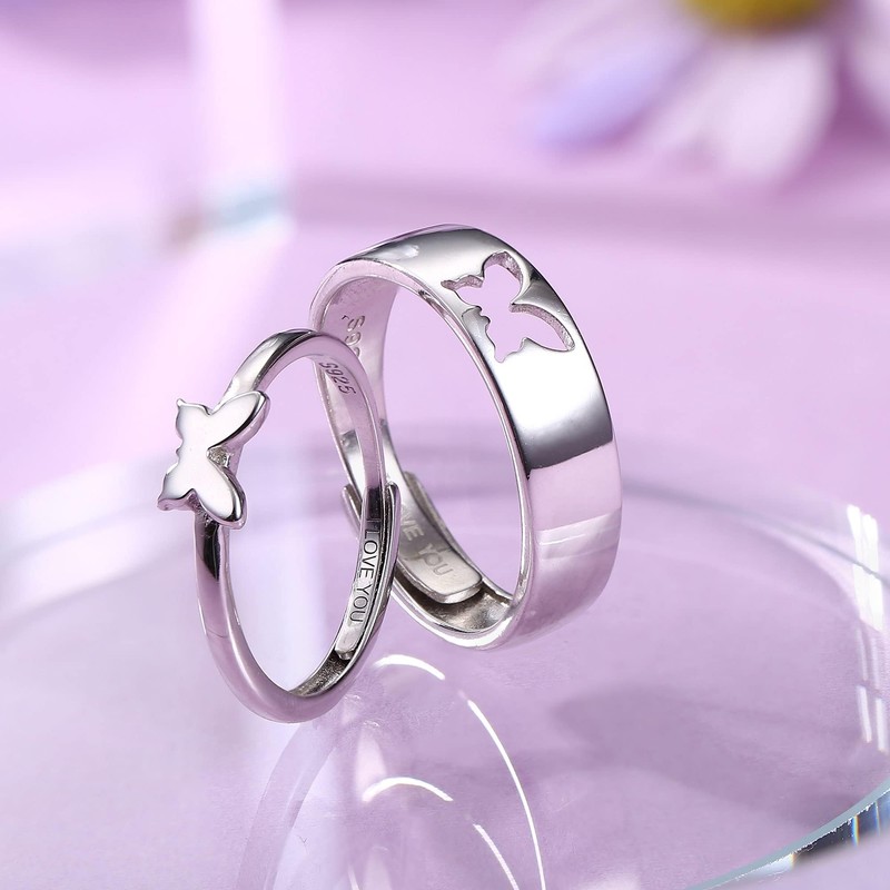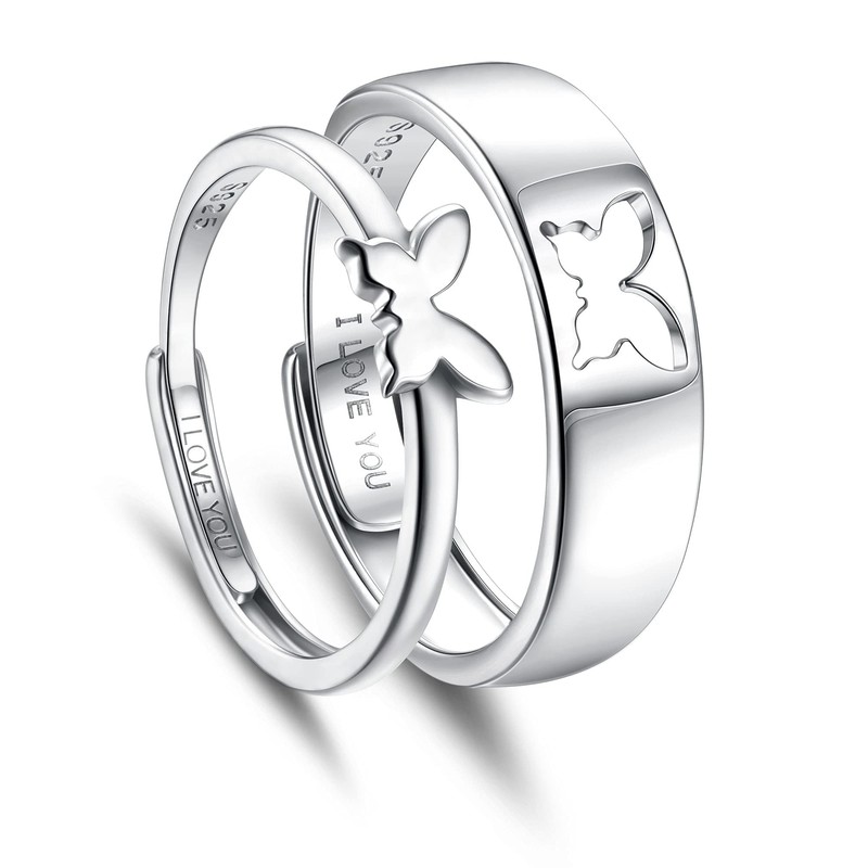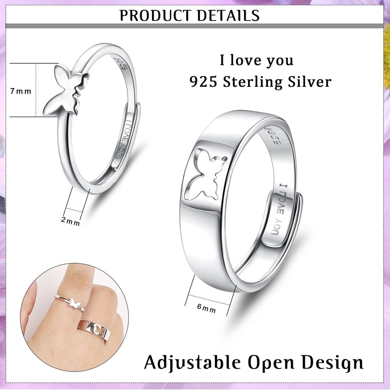 Kakonia Sterling Silver Ring For Couples Promise Butterfly Couple Rings For Teen Girls Engagement Adjustable Men's Rings For Women Friendship Matching Rings For Couples Rings Girls Mens Womens