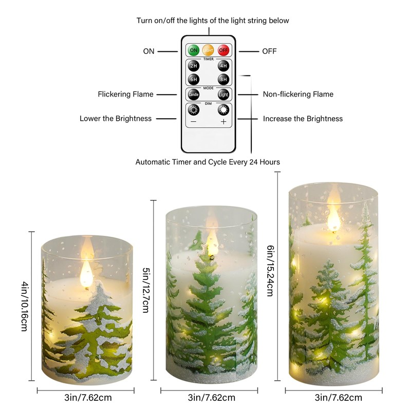 - 【Set Contains】: This electric candles set consists of 3 candles, 1 remote control, and a manual. Each flickering candles measures 3 inches in diameter, with varying heights of 4“/5“/ 6”. This allows for versatile placement and arrangement to suit different spaces and decorative needs.