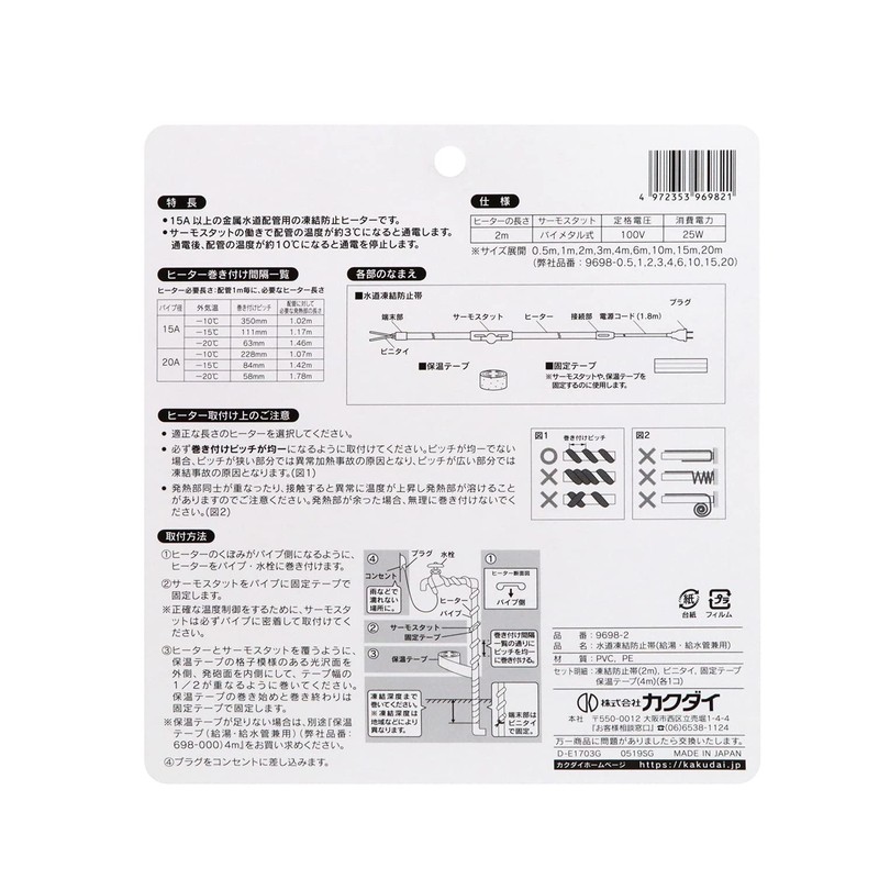 Kakudai 9698 Tap Freeze Prevention Belt, For Hot Water and Water Supply Tubes