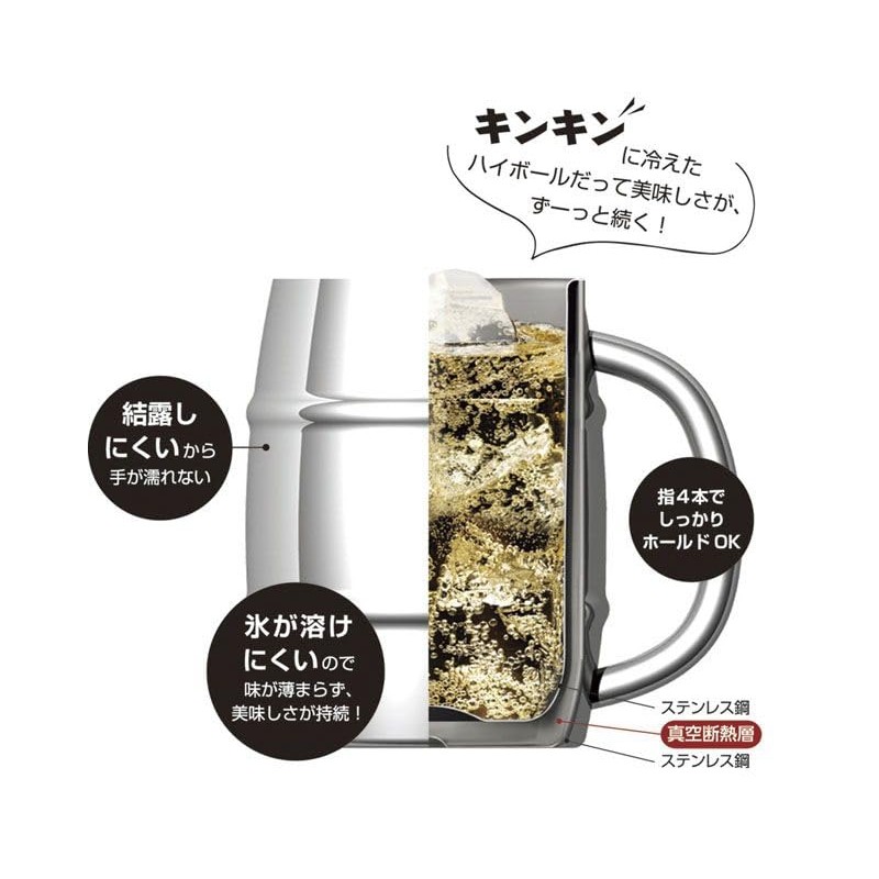 Kakusee Vacuum Double Layer Stein for 11.8 fl oz (350 ml) Silver