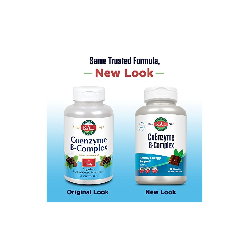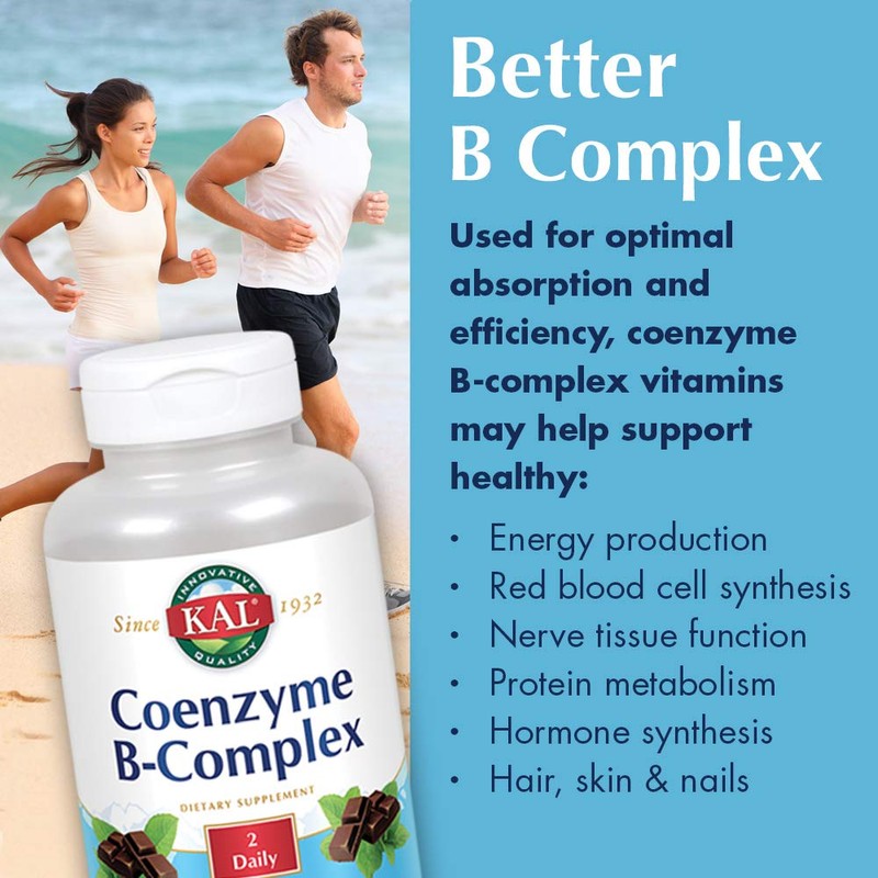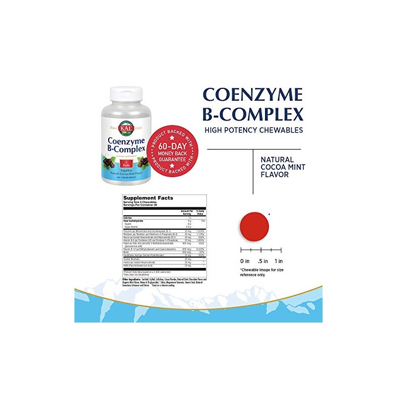 KAL Coenzyme B-Complex Tablets, Cocoa Mint, 60 Count