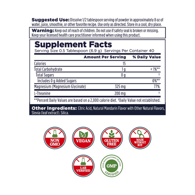 - Brighten Your Mood: In addition to supporting over 300 biochemical processes in the body, magnesium is known for helping to promote feelings of relaxation. We've added l-theanine 200mg to our magnesium glycinate powder for its reputed role in providing support during times of occasional stress.