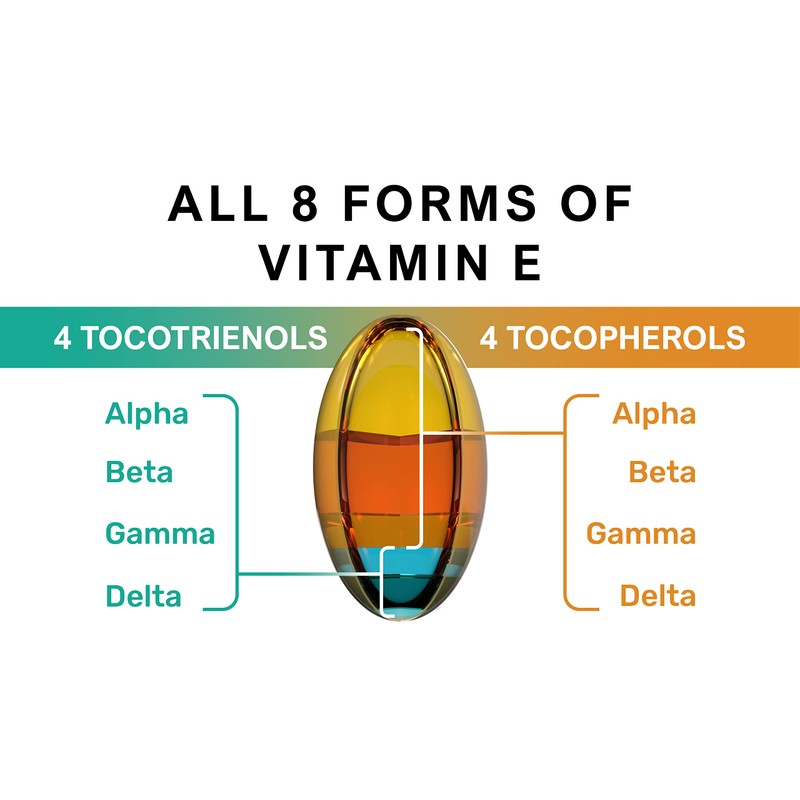 The only Vitamin E in the market with all 8 tocopherols and tocotrienols exist in nature.