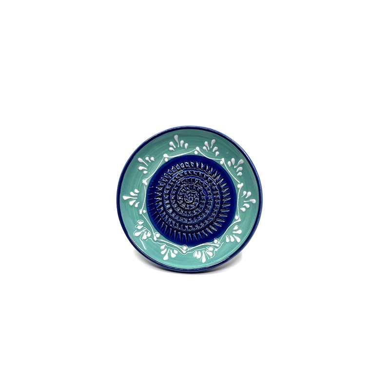 Kaladia Ceramic Grating Plate/Ceramic Slicer, Ideal for Ginger, Parmesan, etc., Design: Turquoise/Blue, Diameter: 12 cm, Handmade and Hand-Painted in Spain