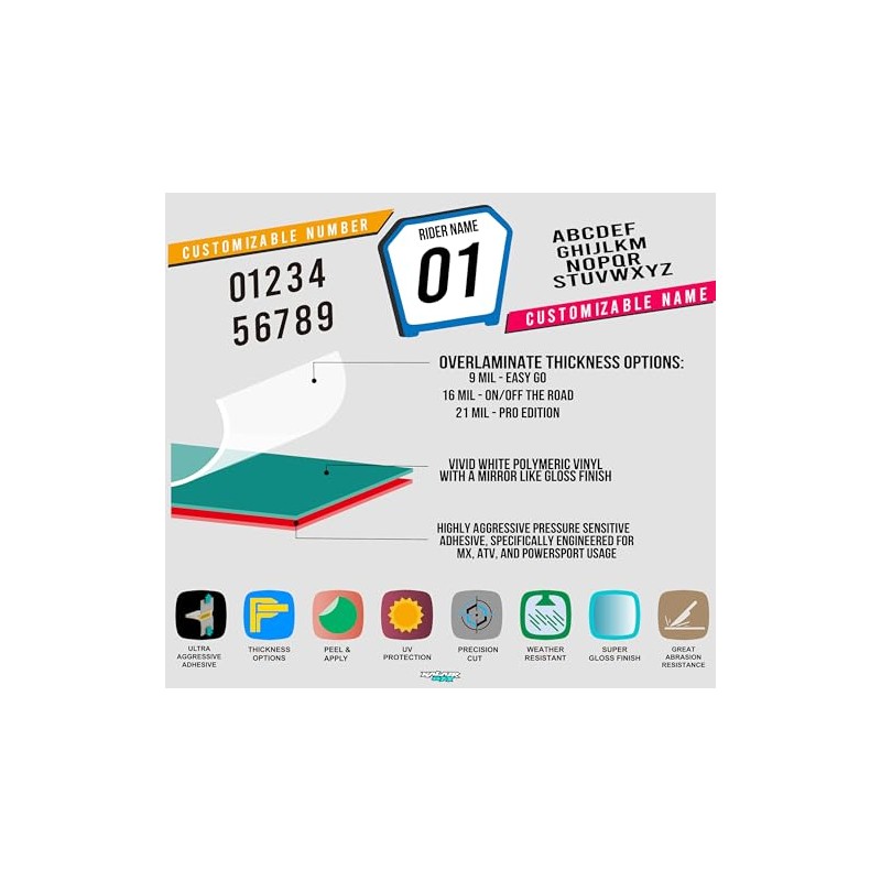 Market leading designs printed on triple layered vinyl with a glossy UV protective layer and ultra-aggressive adhesive specifically engineered for motocross and ATVs