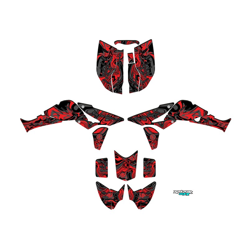 - Market leading designs printed on triple layered vinyl with a glossy UV protective layer and ultra-aggressive adhesive specifically engineered for motocross and ATVs