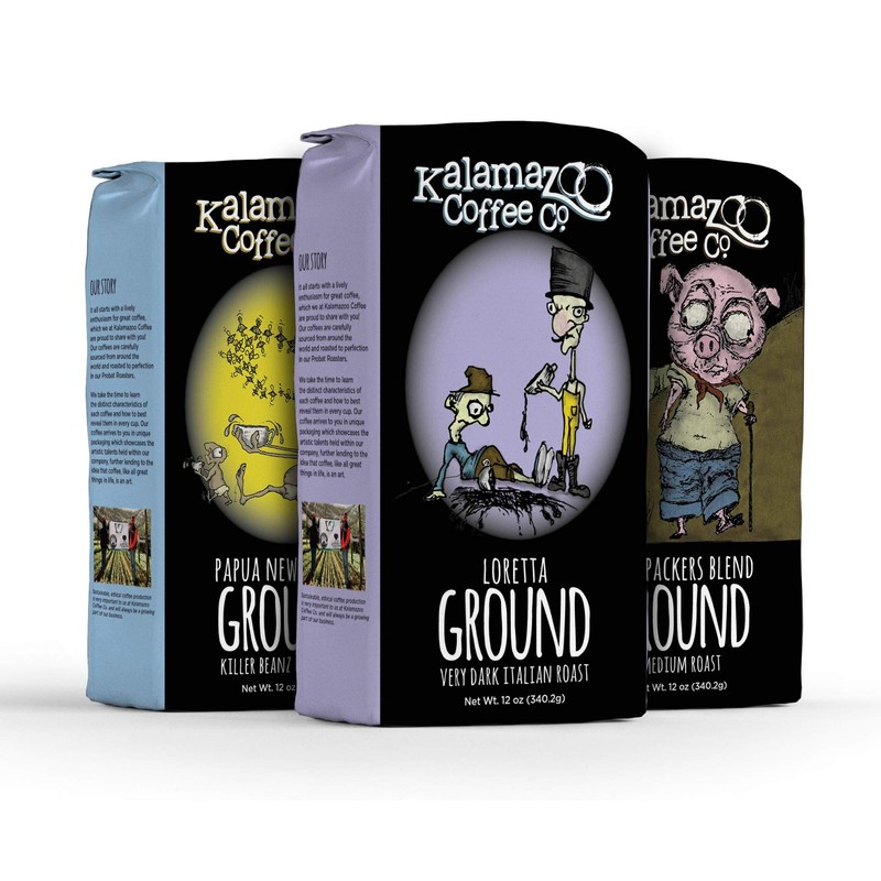 KALAMAZOO COFFEE COMPANY Ground Coffee Variety Pack - Backpackers Blend, Loretta, & Papua New Guinea | 12oz Bag (3 Pack)