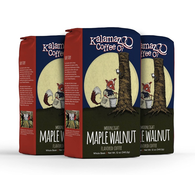 KALAMAZOO COFFEE COMPANY Maple Walnut Whole Bean Coffee - Moonlight Maple Walnut Flavored Coffee | 12oz Bag (3 Pack)