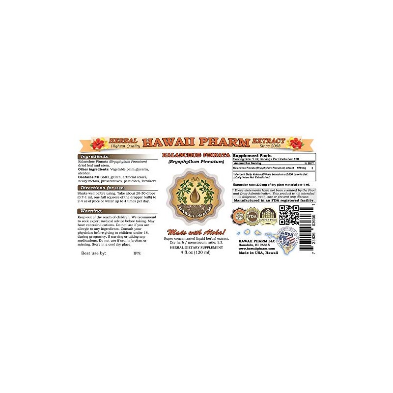 Hawaii Pharm LLC Kalanchoe Pinnata (Bryophyllum Pinnatum) Tincture, Dried Leaf and Stem Liquid Extract, Kalanchoe Pinnata, Herbal Supplement 4x4 oz
