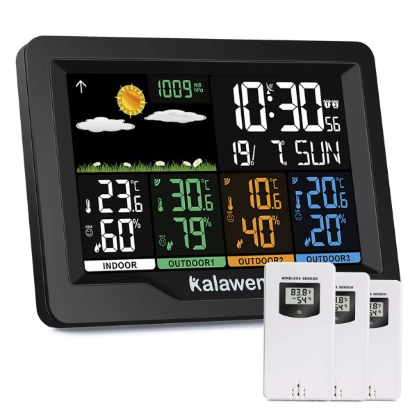 Kalawen Home Wireless Weather Station Multiple Sensors with Atomic Clock, Indoor/Outdoor Thermometer Wireless Humidity Barometer Monitor