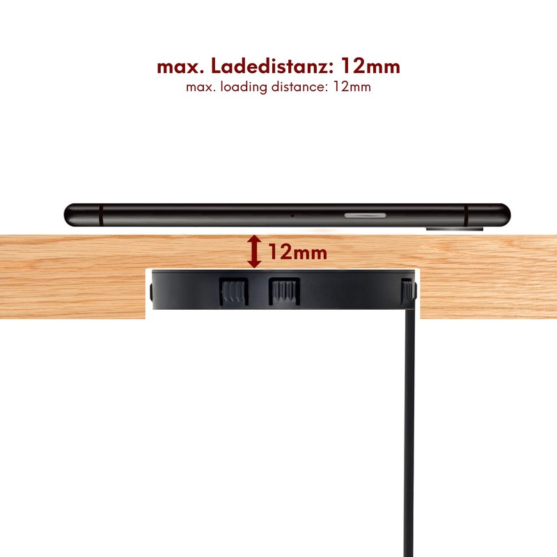 Universal and compatible: with dimensions of 85 x 13.5 mm (diameter x height) and a charging distance of up to 12 mm, our charger fits seamlessly into a variety of living and room concepts. Whether living room, kitchen or study, the universal applicability makes it the ideal addition to any room. Use the wireless charger for all Android and iOS devices that are Qi charging.
