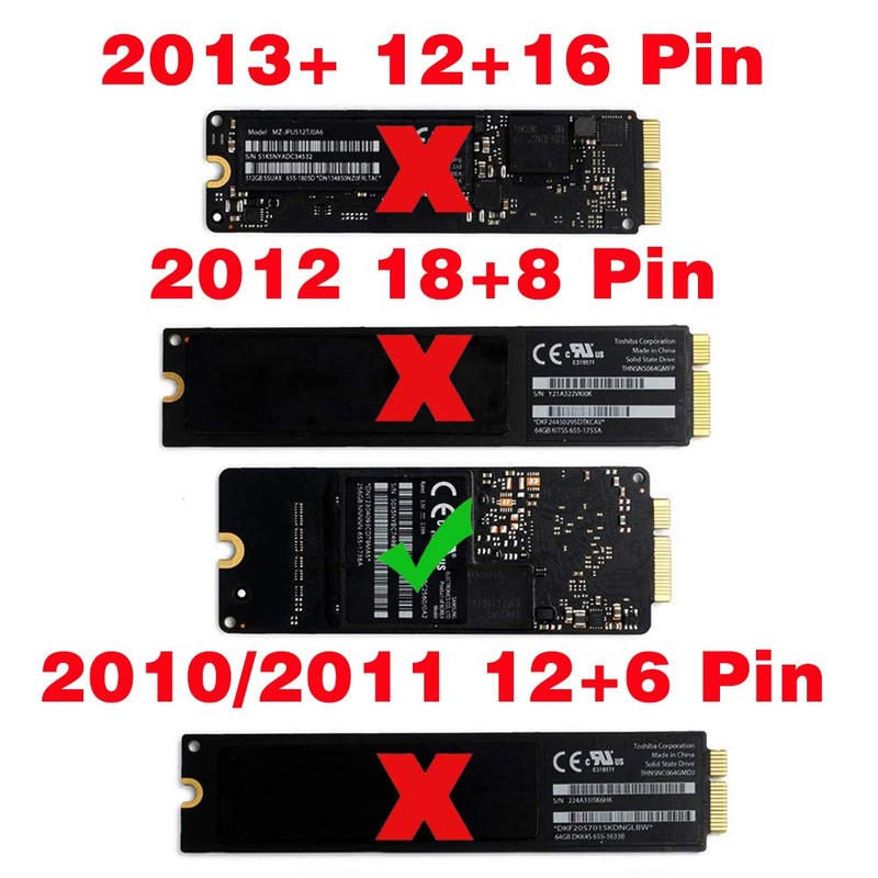 - For SSD in 8 + 18 pin MacBook Pro (not suitable for the SSD of MacBook Air, which is good that even in 18+8 pins are thinner and longer).