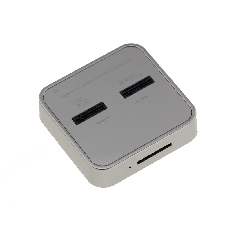 - Dual port dock for M2 SSDs, one supports SATA type SSDs, the other supports PCIe NVMe SSDs. Also features a connector for SD Express cards (SD 7.1)