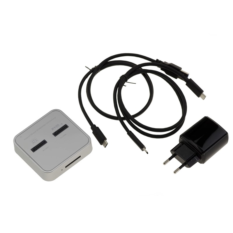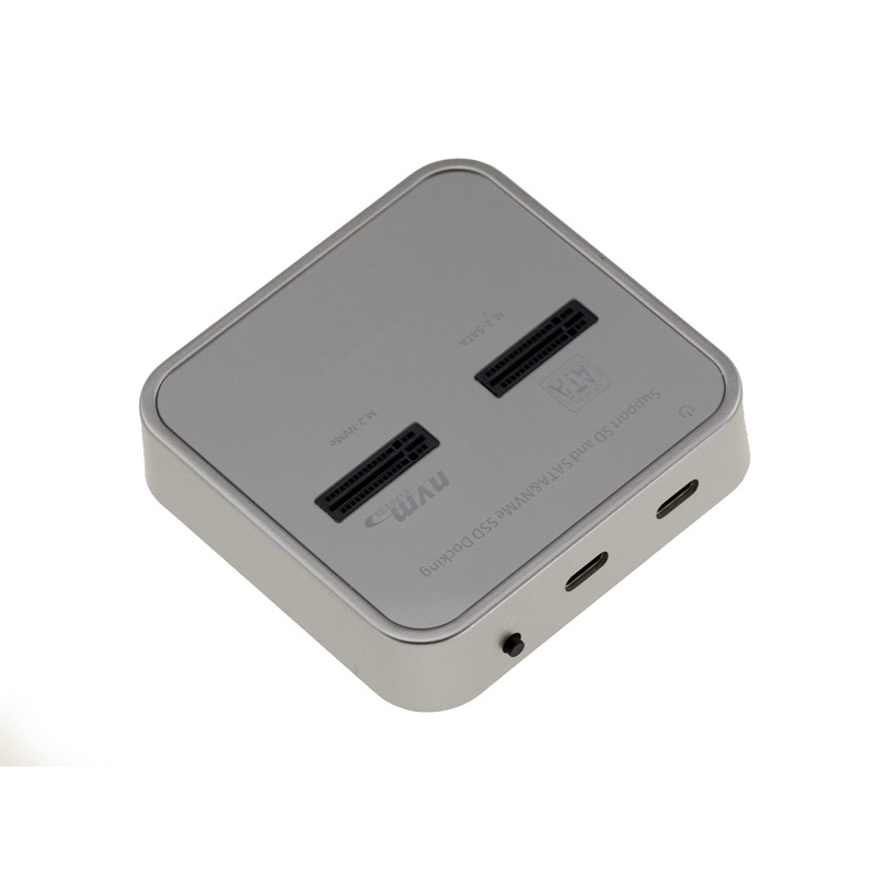 - Dual port dock for M2 SSDs, one supports SATA type SSDs, the other supports PCIe NVMe SSDs. Also features a connector for SD Express cards (SD 7.1)