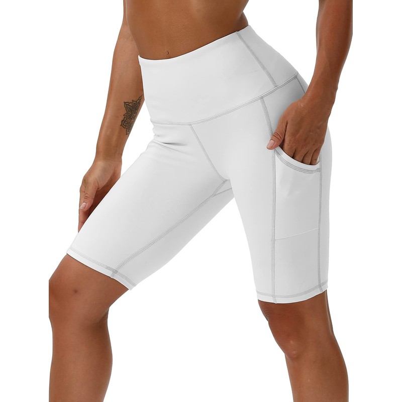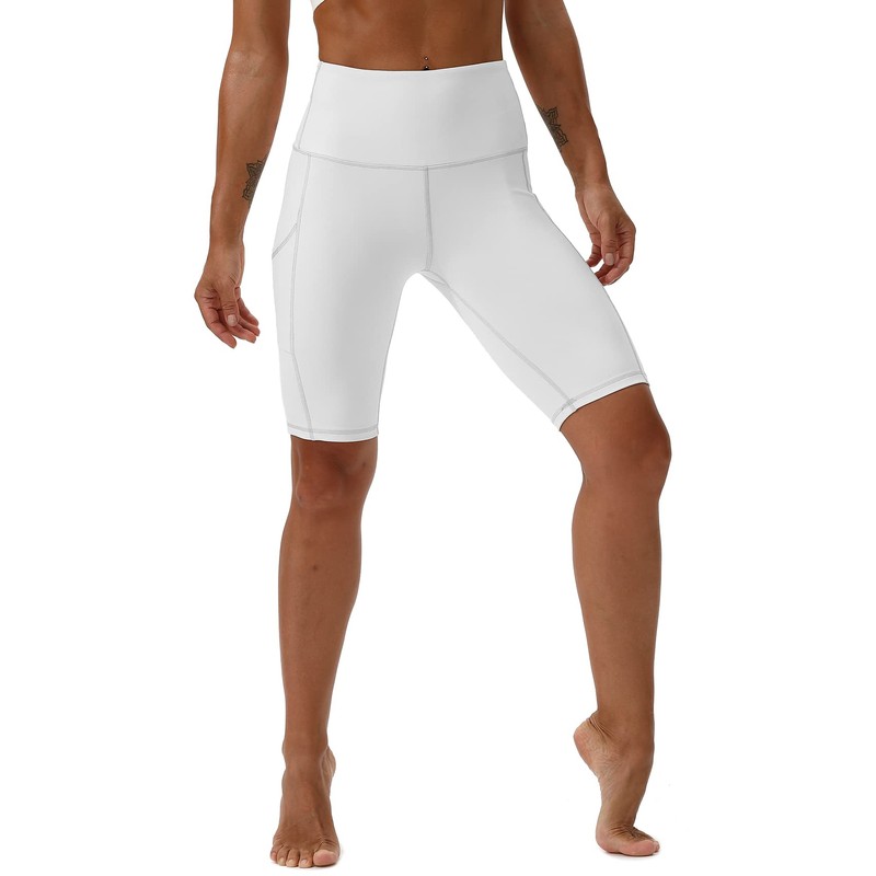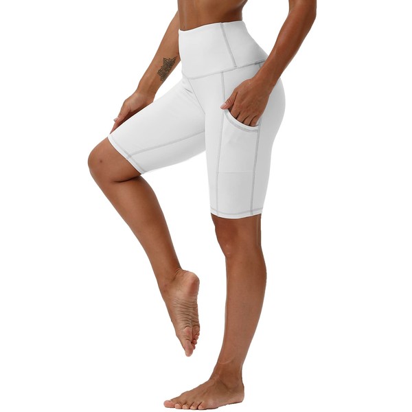 Kaleilo High Waist Yoga Shorts for Women Tummy Control Fitness Running Shorts with Pockets White S