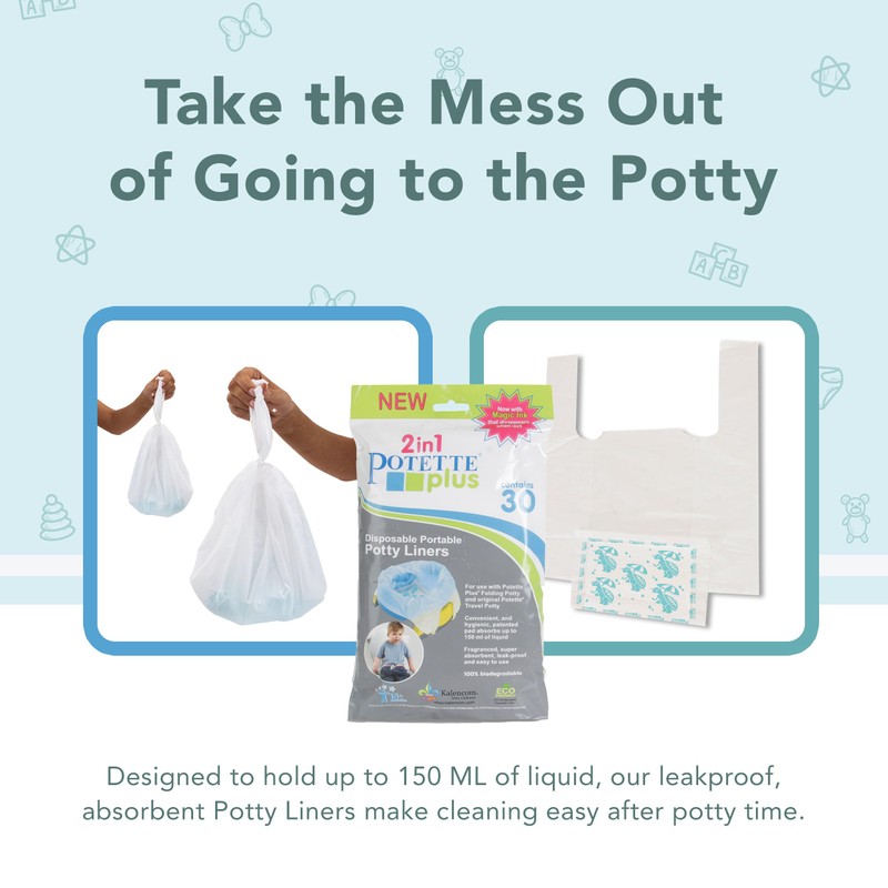 - Make Potty Time Mess-Free and Stress-Free: Our convenient, disposable potty bags take the mess (and stress) out of potty breaks with your toddler. All disposable potty liners are leakproof and super absorbent, so you won't have to worry about accidents or spills. The easy clean-up design of the toilet liners prevents the need for constant potty washing. A win for you and your toddler!