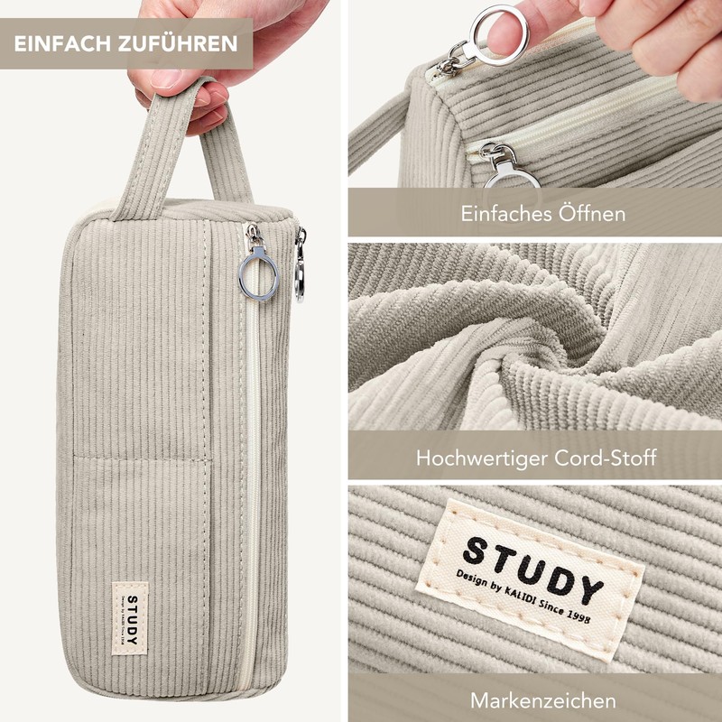 KALIDI Corduroy Fabric Pencil Case Aesthetic Pencil Case Large Pencil Case Girls Boys Teenagers Adults Pencil Case with Carry Handle for School Office, lightgrey, pencil case