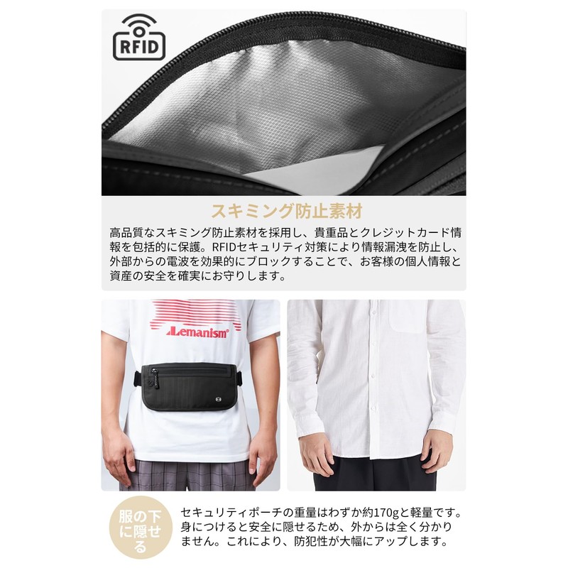 - RFID protection. Hidden Security Design: The simple design of this security pouch is a multi-functional waist pouch-type security bag. Equipped with anti-skimming pocket and RFID shielding mesh to effectively block unauthorized information reading. Protects your valuable personal information. Great protection for your valuables!