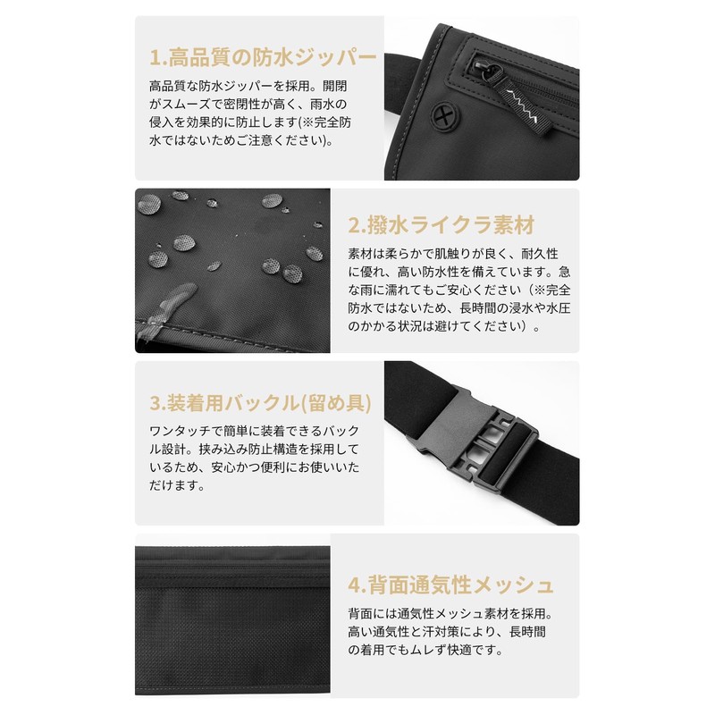 - (Waterproof and Sweatproof Material for Comfortable) Made with high quality waterproof nylon material to protect your valuables from rain or sweat intrusion. Keeps contents dry even during sudden rain or long tourism trips, outdoor activities. Keepé (rip-resistant) treated fabric resists scratches and tears for years to come. The back is made of breathable mesh material that effectively prevents stuffiness. Provides a comfortable wearing experience. It will keep you comfortable even when wearing for a long time
