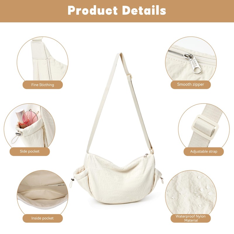 - 【Classic minimalist design】The women's hobos & shoulder feature an elegant curved cut, giving it a adorable look. Nylon crescent bag comes with a zippered pocket and two inner pockets. Additionally, it has been upgraded with two side pockets in a separate compartment, which allows for easy classification and effective organization of items.