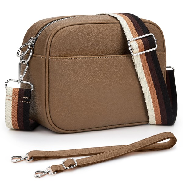 KALIDI Women's Shoulder Bag, Small Bag, Mini Bag, Crossbody Crossbody Multi-Layer, Waterproof, Lightweight, Solid, Large Capacity, Leather, Includes 2 Shoulder Straps, Braun