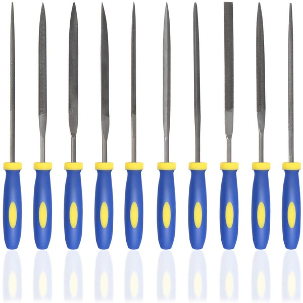 - Quality materials: The needle file set is made of high carbon steel with unique blue-yellow plastic. Ergonomic, Non-slip rubber handle maintains good grip even in wet conditions.