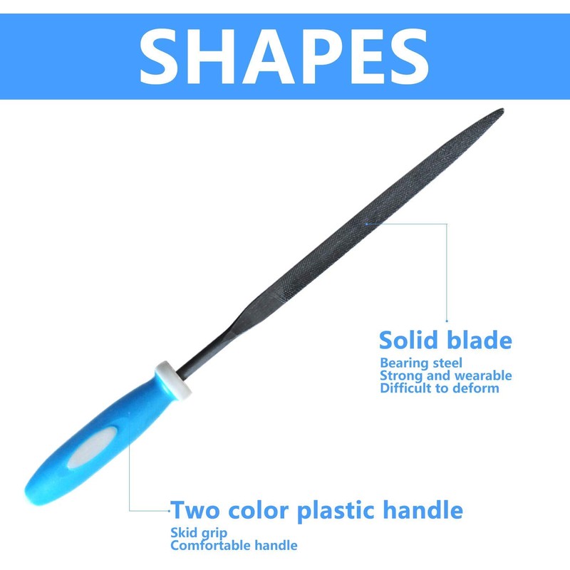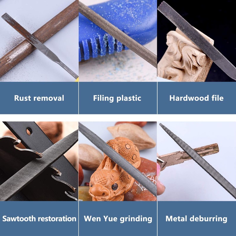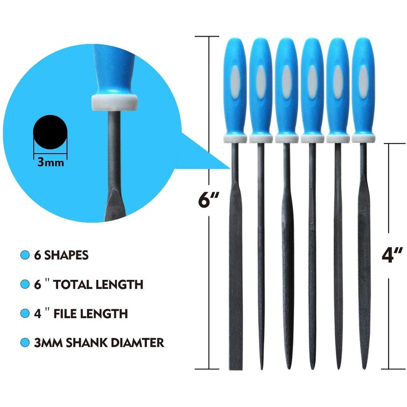 - NEEDLE FILE SET INCLUDES :Round file,Half-Round file,Flat file,Flat Warding file,Square file and Triangular Rasp file.