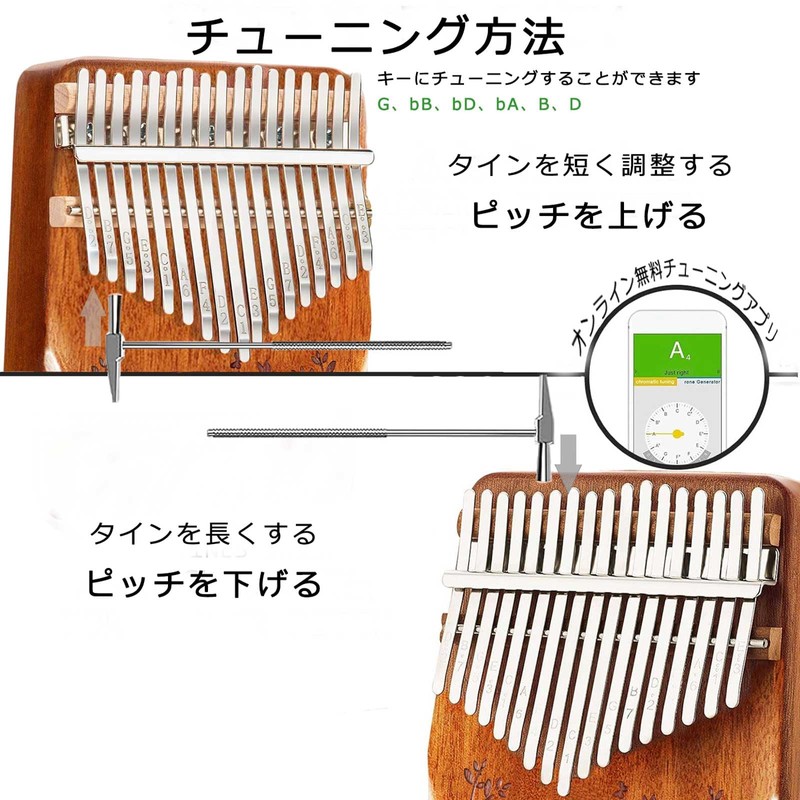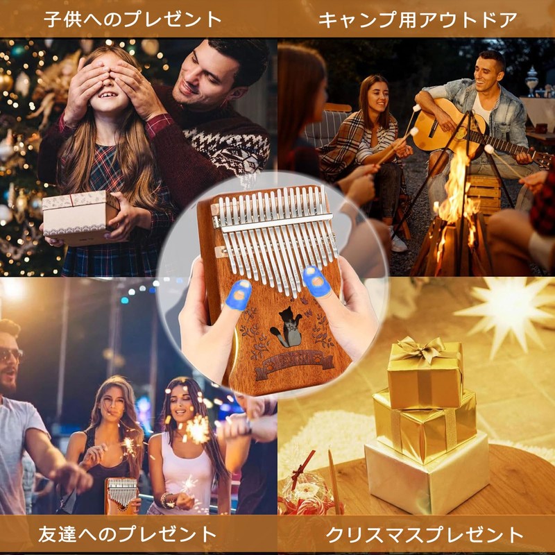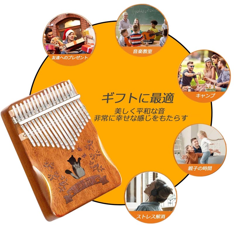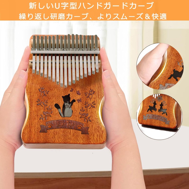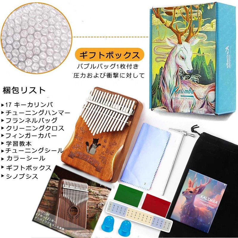 Kalimba 17 Key Beginner Set, Mahogany, Tuned, Scale Engraved, Tuned, Japanese Sheet Score, Introduction Book, Thumb Piano, For Beginners, Musical Instrument Set, Gift for Children and Adults (Cat)