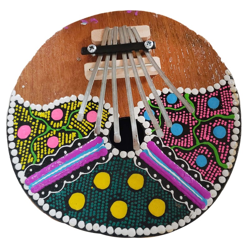 - [WHAT YOU GET] Kalimba Calabash Gourd Shell Abstract Dot Art [SIZE] 6.5x3 inches [GENUINE HUMAN TOUCH] Each Drop Of Paint Is Dispensed Using A Home Made Dispenser - The Random Pattern Style Varies For Each Kalimba Which Is The Uniqueness Of This Thumb Piano - No Two Are Exactly Alike.