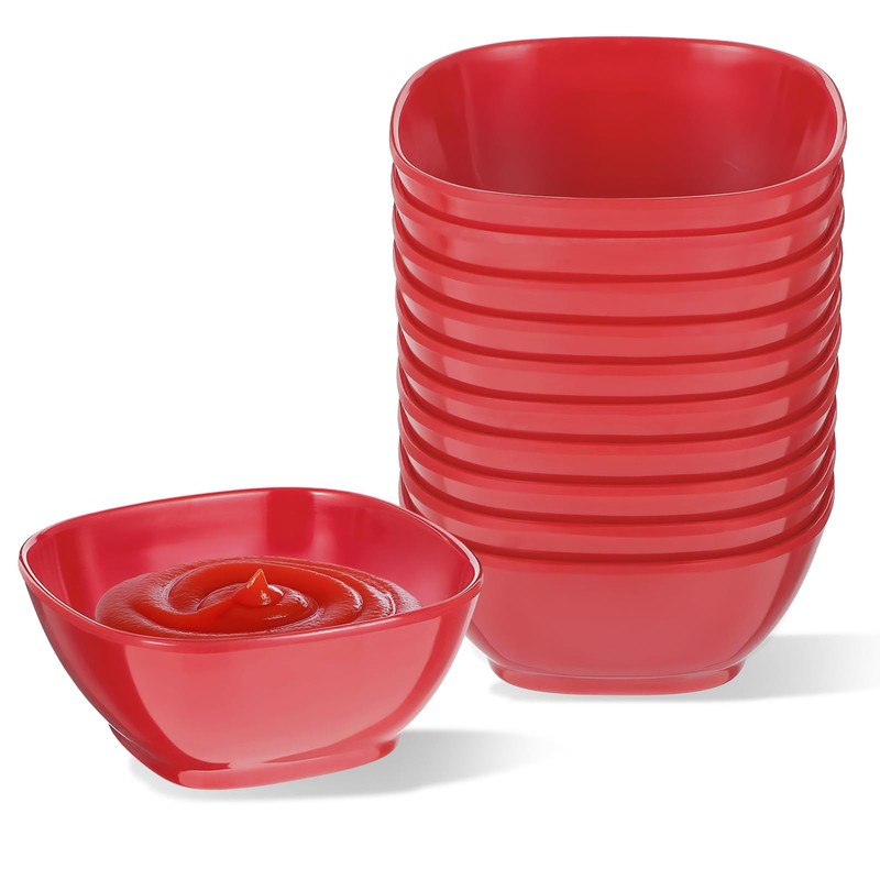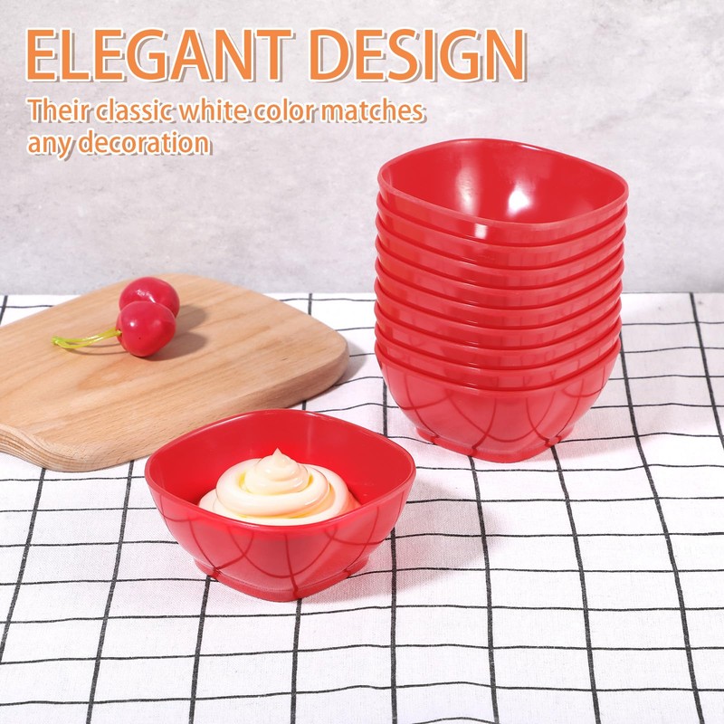 KALIONE 8.5 oz Kids Plastic Bowls, 4.4 Inch Melamine Dessert Bowl, Cereal Salad Bowls, Unbreakable Dipping Sauce Bowl, Small Ice Cream Cup, Pack of 10 Red