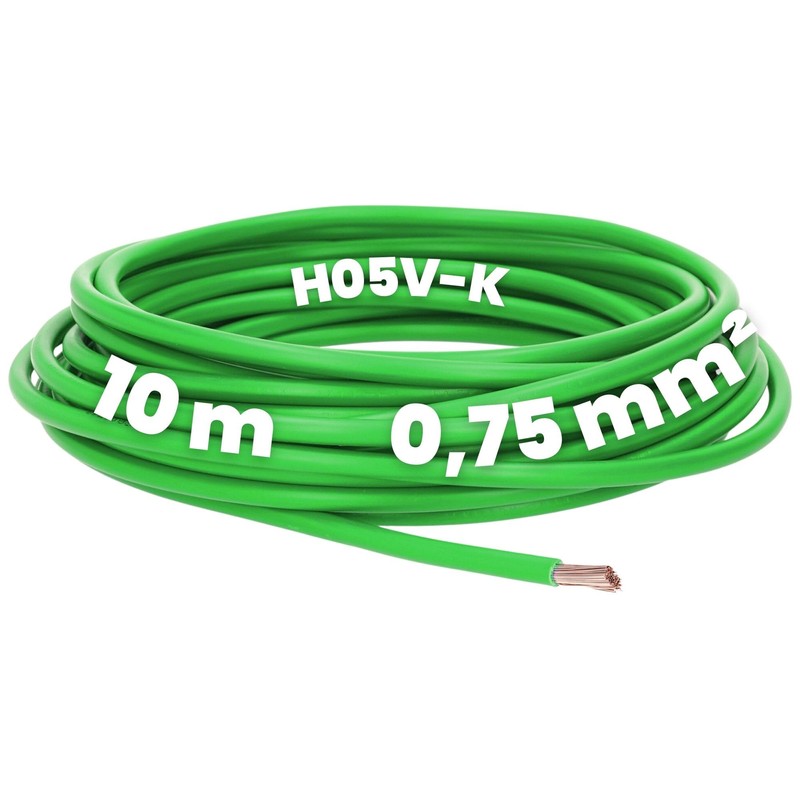 Kalitec 10 Metres H05V-K 0.75 mm² Green Wiring Cable, Flexible Wire Cable, PVC Single Wire, 0.75 mm² Wire, Fine-Strand Wiring, Single Wire, Single Wire, Switch Wire