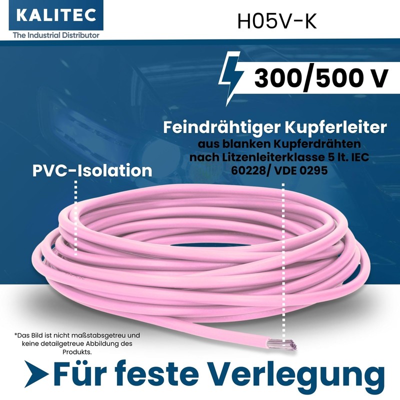 - Optimal installation: the Kalitec cable H05V-K is ideal for installation in electrical installation pipes as well as on and under plaster for signal systems. It is also ideal for fixed and protected installation.