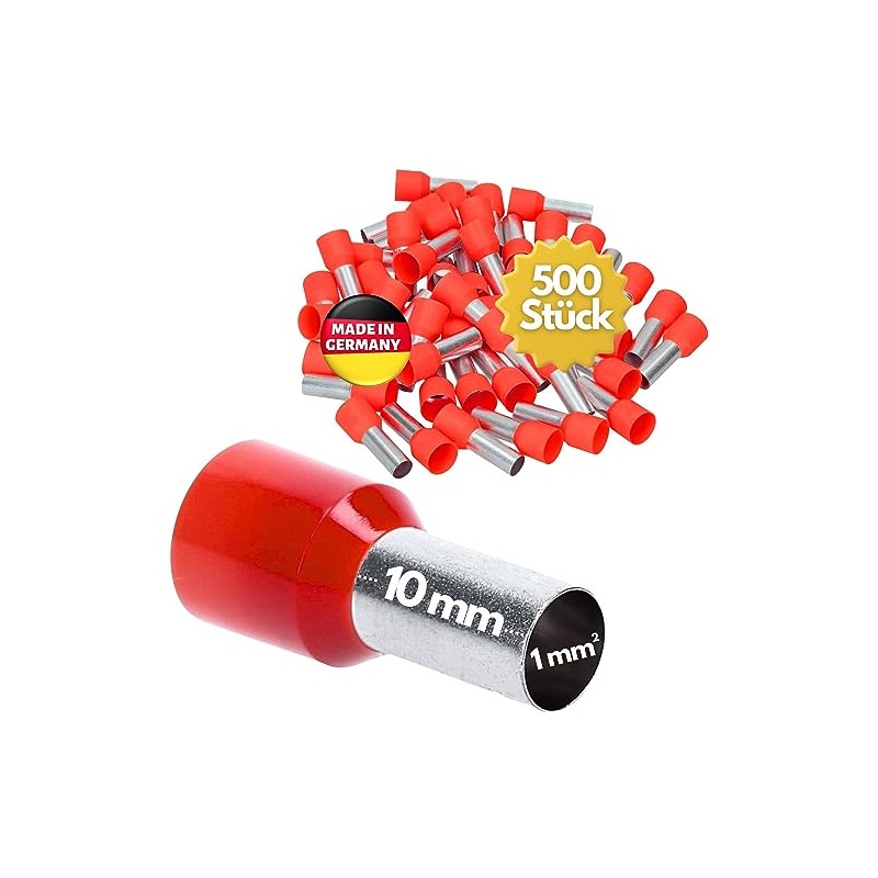 Kalitec AE110RT Insulated Wire End Ferrules 1.0 mm² 10 mm Long Red I Made in Germany I Industrial Quality Pack of 500