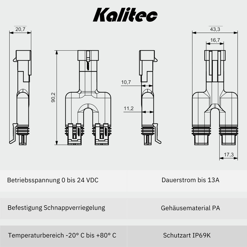 Kalitec SuperSeal 2-Pin Y-Splitter 1.5 mm I Car Plug 2-Way I Waterproof Dustproof IP69K I Y Connector for Car and Boat I Operating Voltage 0 to 24 VDC