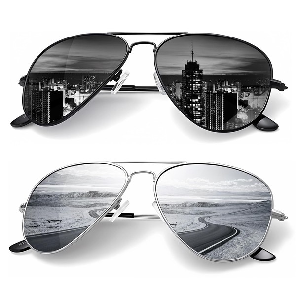 KALIYADI Classic Aviator Sunglasses for Men Women Driving Sun glasses Polarized Lens UV Blocking (2 Pack) 58mm