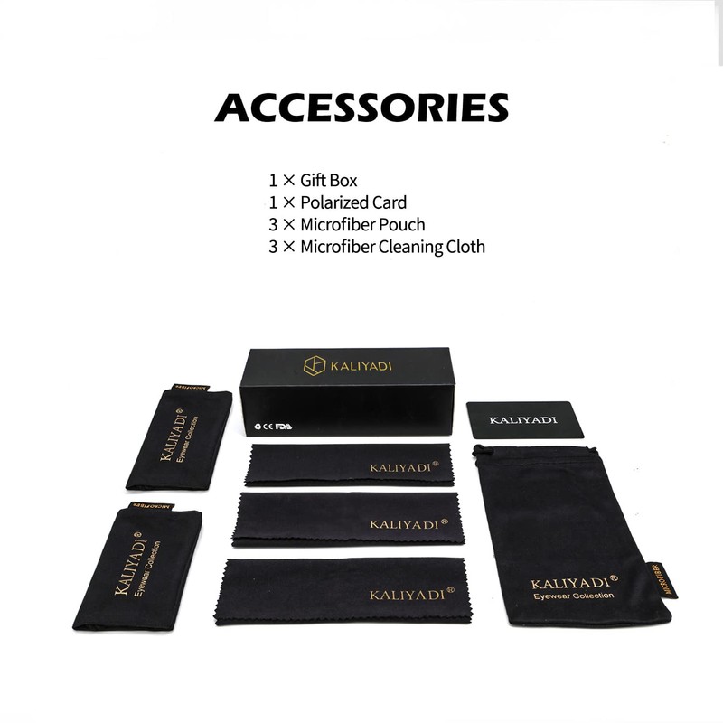 - ★ Gift Idea Package and Brand Customer Service ▶ Classic sunglasses*3, microfiber pouch*3, microfiber glasses cleaning cloth*3, gift box*1. Our sunglasses for men women are also gift packed, which will be great gifts for your family and friends! All KALIYADI customers enjoy brand customer service for our polarized sunglasses. The integrity of every box and the quality of the lenses are double checked by third-party companies. And that goes with a lifetime support!